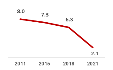 85% (2018) for adults 15 years old and above.