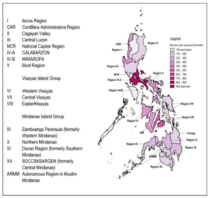 Population – As the second most populous country in ASEAN, Philippines’ population exceeded 110 million people in the year 2020. This also made Philippines one of the most populous countries in Asia, and in doing so, afforded it a launch pad for future economic growth. The growth of the country’s population, however, has been slowing over the years with the latest annual growth rate standing at 1.3%. Still, with a high labor force participation rate of nearly 59.5%, Philippines has a pool of 46 million people to offer companies doing business in the country. Like Indonesia, Philippines, too, is an archipelago, and as such, its population is spread across the more than 7100 islands that together constitute the country. The geographic spread of Philippines’ population can be seen in the image below: