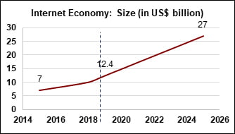 Growth – The internet economy in Singapore has grown at a relatively stable rate, i.e., by 77% from 2015 to 2019. This growth is projected to be further accelerated with increased public and private sector investments in the internet economy of Singapore.
