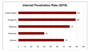Internet Penetration Rate – Singapore has a high internet penetration rate of 88%, which is not only higher than its regional peers, it is also similar to that of the country with the largest digital economy. Though 88% is not the highest figure, it is rather suggestive of the potential growth on account of the unsaturated market.