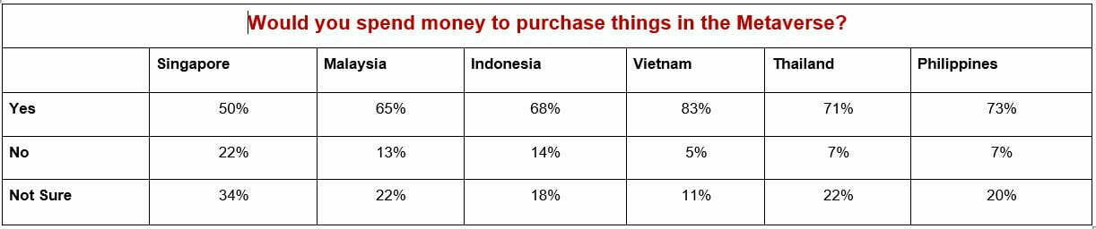 Southeast Asians have gone a step ahead and are even ready to buy products and digital assets on the metaverse, paying real money online or through cryptocurrencies. A survey by Milieu showed that ASEAN citizens are excited about the metaverse and are gearing up to explore these platforms.