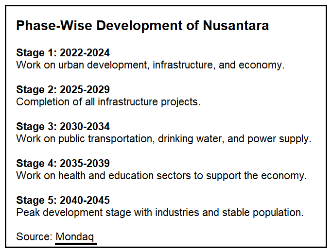 The development of Nusantara will happen in stages so that businesses get ample time to set up their infrastructure in the region.