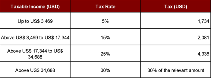 Personal Income Tax–The Personal Income Tax (PIT) rates for individual income are as follows: